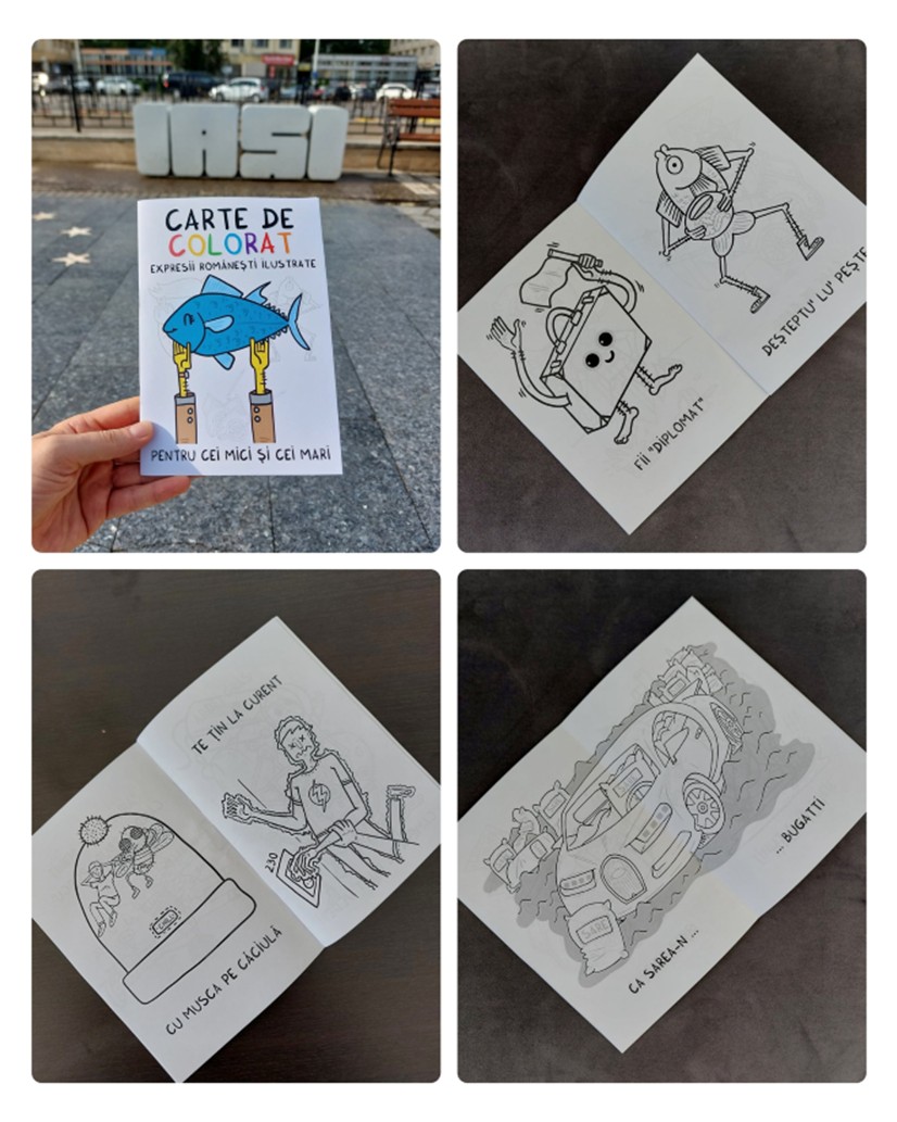 Un alt pas în dezvoltarea proiectului a fost lansarea unei cărți de colorat cu expresii românești, care transformă ilustrațiile într-un format participativ. Volumul invită publicul să intervină direct asupra imaginilor, devenind parte din procesul creativ și reinterpretând vizual expresiile.